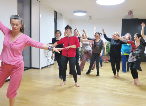 Die Tanzworkshops finden im Rahmen der Frauentanz & Lebenslust Trainerinnen-Ausbildung statt. Das heißt es können Teilnehmerinnen dieser Trainerinnen-Ausbildung den einen oder anderen Tanzimpuls anleiten.
